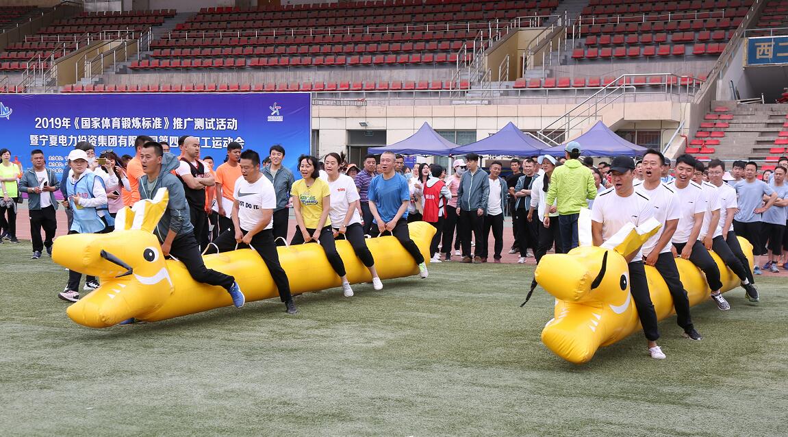 為辦好本屆運動會,集團公司工會進行了有益的創新,借助寧夏體育局2019寧夏《國家體育鍛煉標準》推廣活動平臺,與寧夏社會體育服務中心合辦,將趣味體育游戲和團隊建設相結合,融合了力量、技巧、趣味、智力、團隊等元素,共安排了曲線脫球跑接力賽、一分鐘俯臥撐計數挑戰賽、30秒跳繩計數挑戰賽、4人5足綁腿跑速度賽、摸石過河、旱地龍舟賽、快樂彩虹傘等7個團隊競賽項目。來自集團本部及各控股公司的6支隊伍,共225名職工、372人次同場競技,比賽不分男女、不分年齡,大家分享體育運動帶來的樂趣,歡呼聲與歡笑聲為運動會增添了無限的青春和活力。