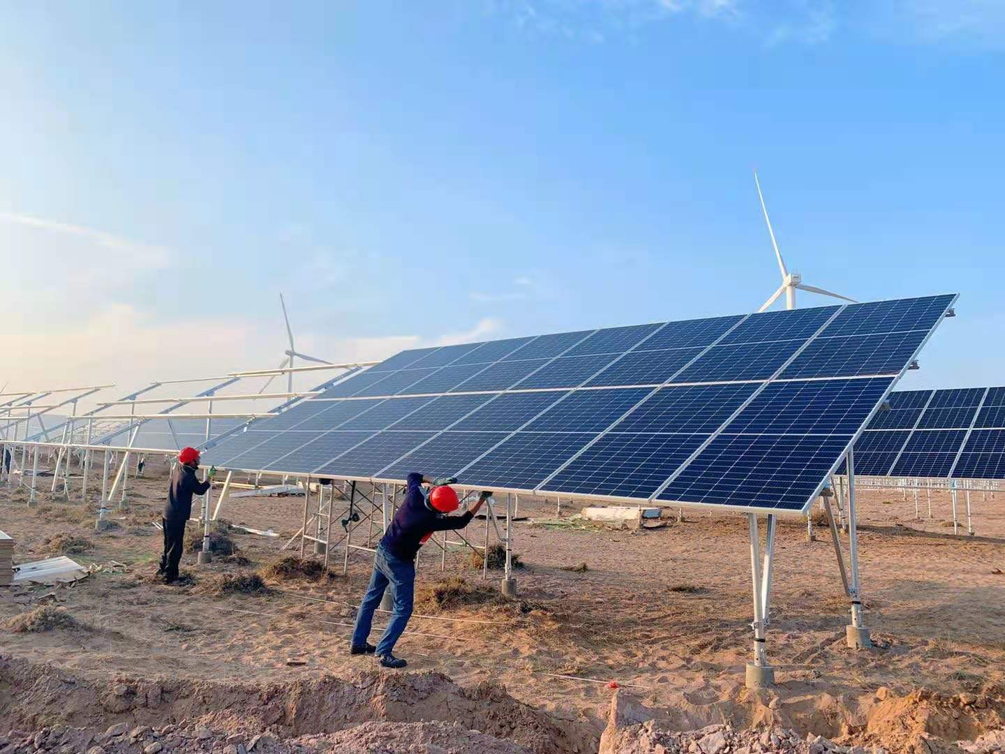 新能源公司太陽山光伏電站100MWp復合項目自9月開工建設以來,搶工期、趕進度、保安全,順利通過首次質量監督檢查。截至11月中旬,放點、引孔、澆樁、升壓站基礎工作全部完成,安裝支架3824組,完成65.4%;敷設低壓電纜62406米,完成69.7%;敷設高壓電纜9051米,完成82.3%;安裝組件84組;升壓站設備已全部到貨,正在安裝接線。